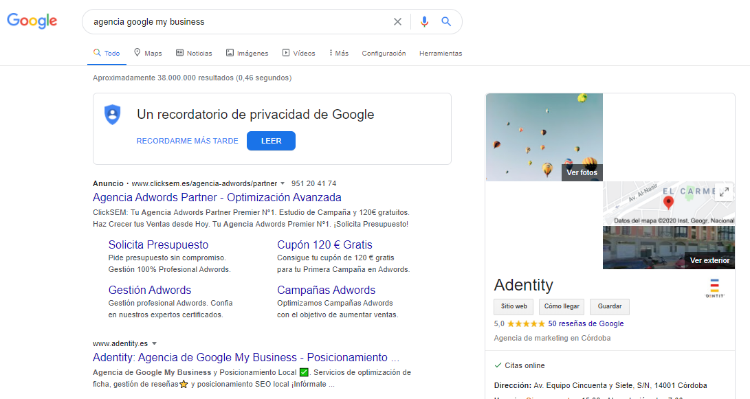 Por otro lado, podrás generar campañas de Google Adwords, donde Google se encargará de que tu anuncio llegue a tus clientes potenciales. Si crees que tienes margen para hacer una inversión, prueba con una campaña y comprueba resultados.