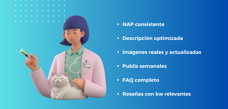 - Optimización para búsquedas por voz: “clínica veterinaria cerca que atienda ahora”.